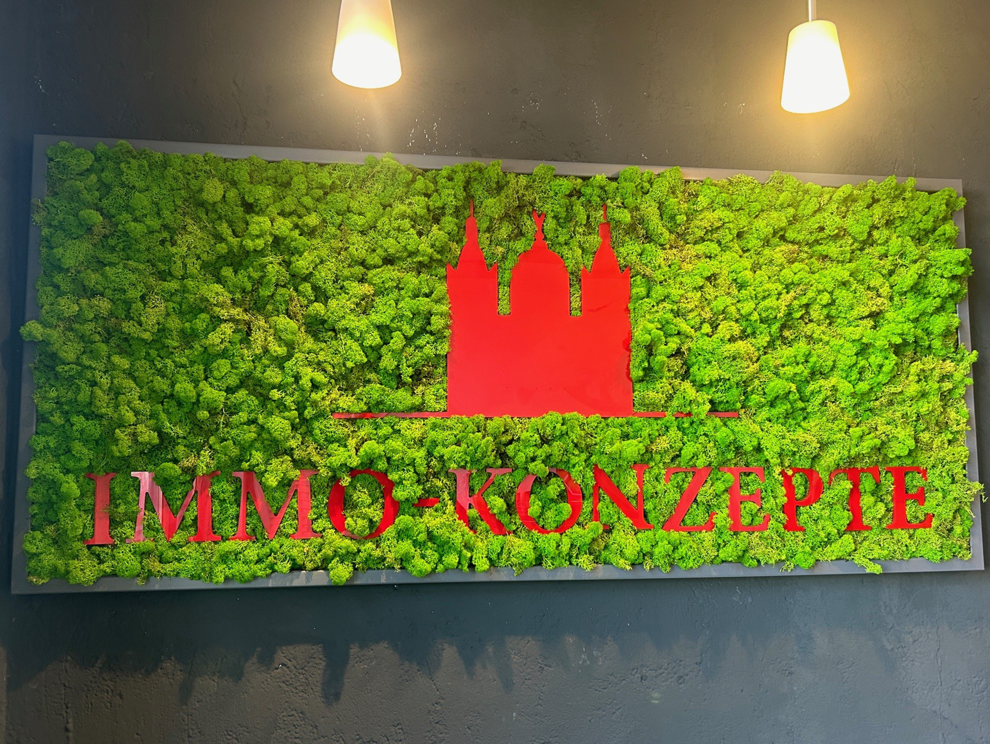 Jedes Moosbild wird individuell mit Ihrem Logo oder Schriftzug gefertigt und verleiht Ihren Räumen eine einzigartige, natürliche Atmosphäre.